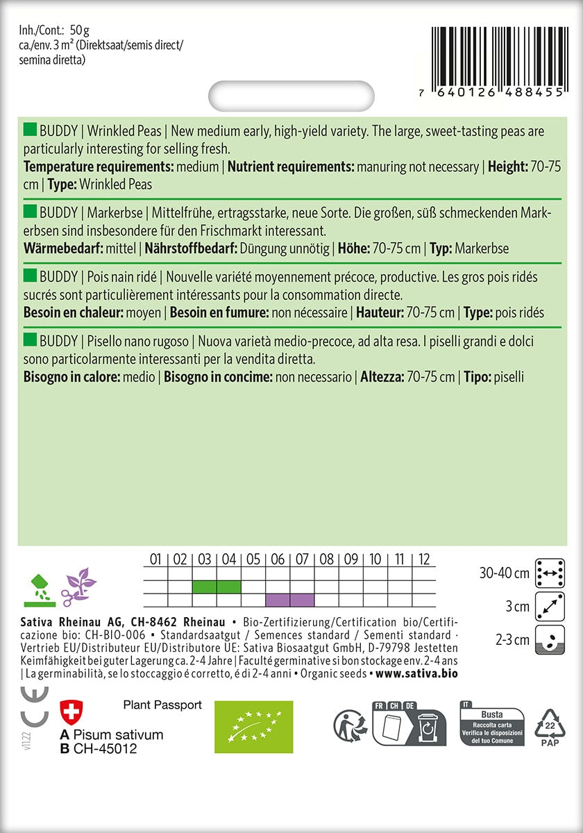 Ny medium tidlig sort med højt udbytte. De store ærter er virkelig søde og velsmagende. De er helt fantastiske som friske ærter lige fra planten og gode til at sælge fra vej boden. Planterne bliver op til 75 cm høje.