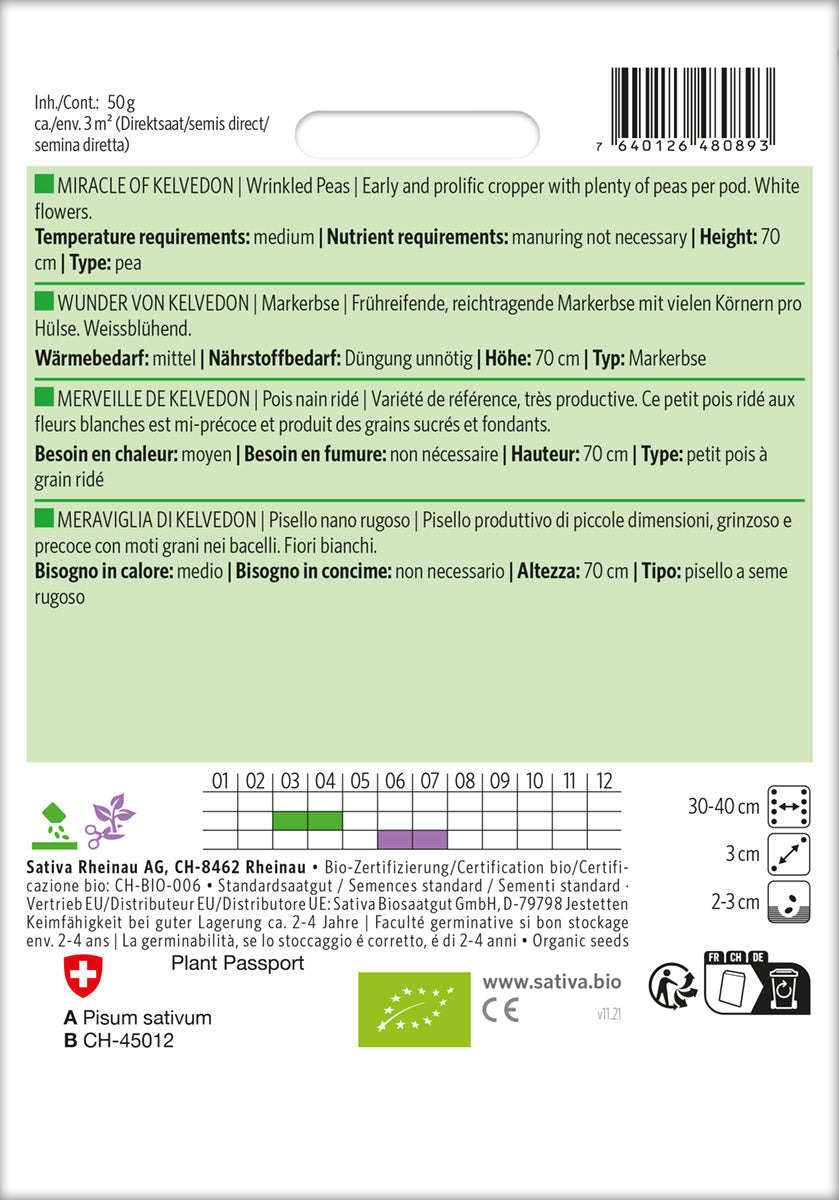 Denne ært er meget velsmagende. Den modner på ca 50 dage og planterne bliver 70 cm høje.