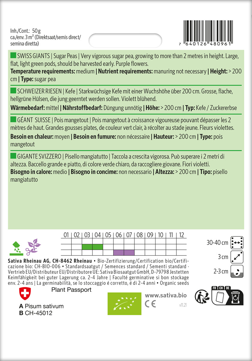 Denne ært er meget velsmagende. Planterne bliver 2 meter høje.