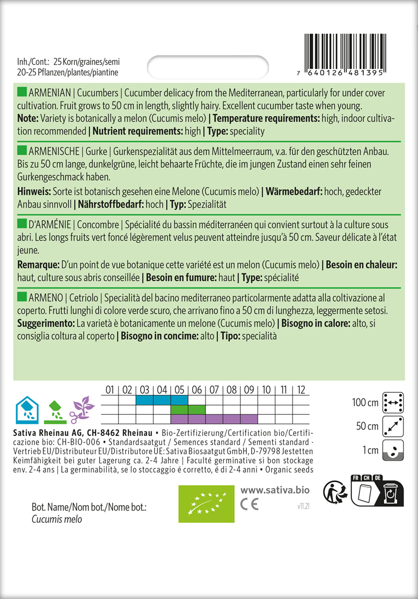 Lækker armensk agurk. Denne sort kan blive op til 50 cm lang. Den har en virkelig lækker smag.