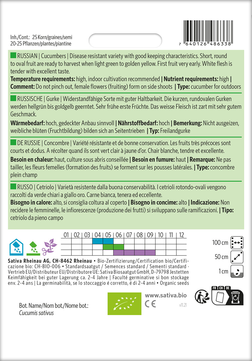 Lækker agurk. Kort, rund til oval frugt er klar til høst, når den er lysegrøn til gylden gul. Lækker mild smag.