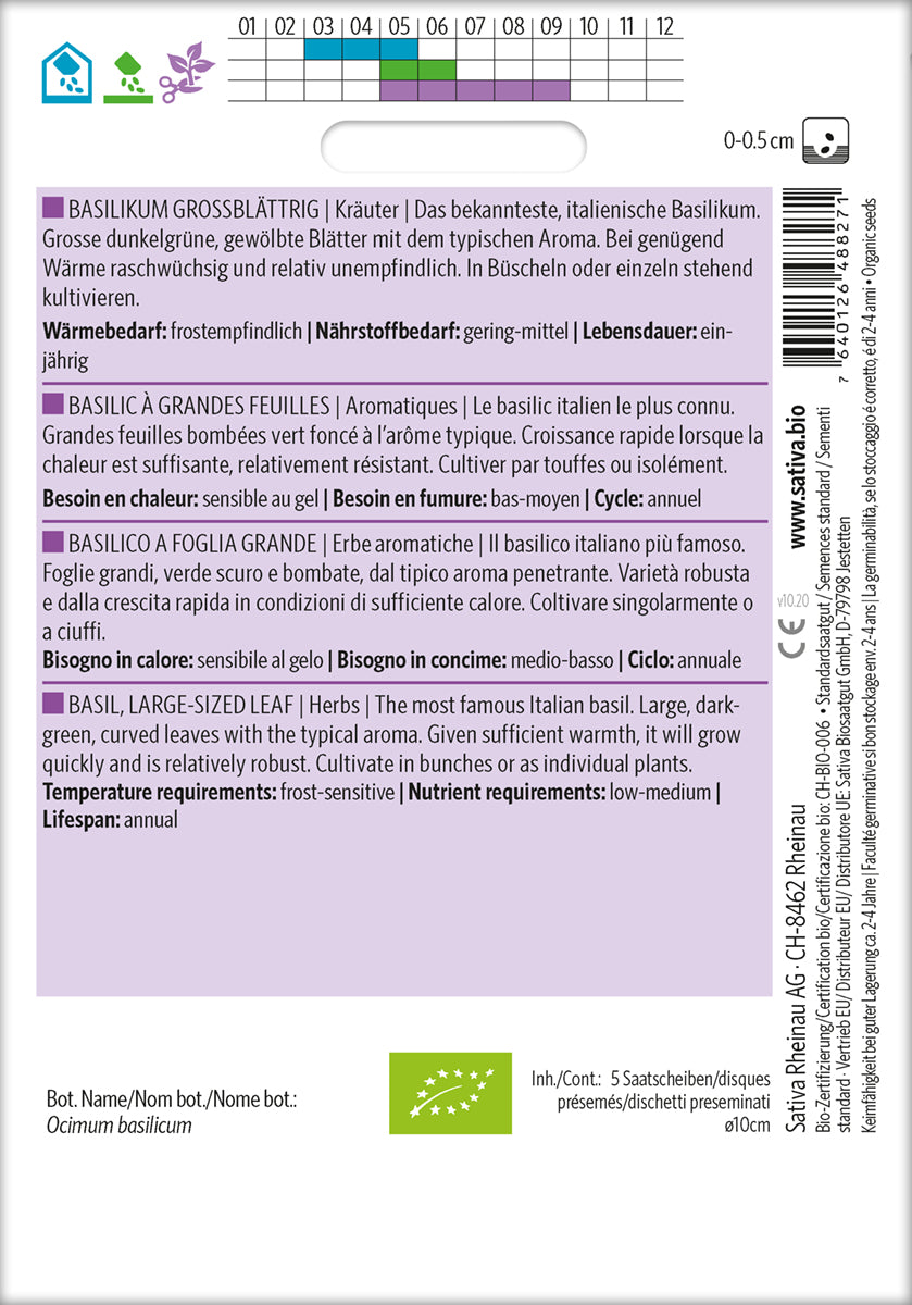 Den mest berømte italienske basilikum. Store, mørkegrønne, buede blade med den lækre smag. Med tilstrækkelig varme vokser den hurtigt og er relativt robust. Dyrk i klaser eller som individuelle planter.