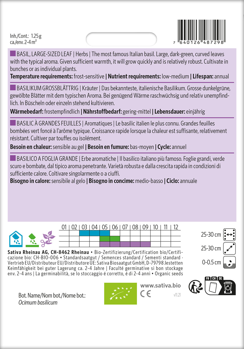 Dyrkningsråd Så indendørs i minidrivhus med såjord. Dæk ikke frøene, men tryk dem let ned i den fugtige jord. Spirer efter 10-15 dage afhængig af temperaturen. Plant ud når risikoen for frost er ovre. Basilikum er følsom overfor vind og kulde. Klip toppen så planten forgrener sig. Høst inden planten blomstrer. Tørrede blade opbevares i tætsluttende krukke.