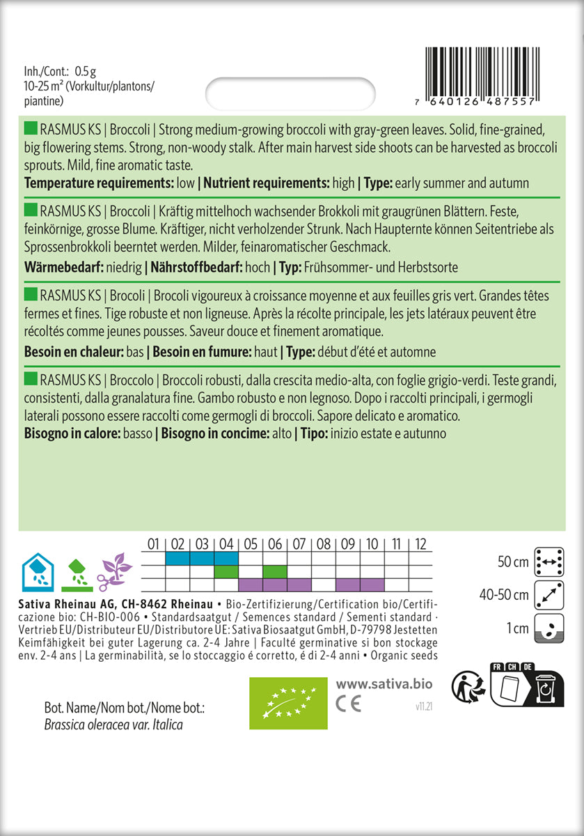 Lækker broccoli. Efter hovedhøsten kan sideskud høstes som broccoli-spirer. Mild smag. Type: tidlig sommer og efterår. Modningstid: 60-65 dage.