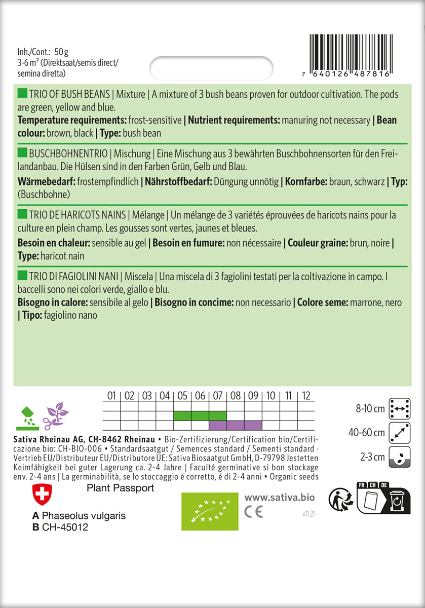 3 lækre sorter af busk bønner specielt udvalgt til denne mix i farven grøn, gul og lilla