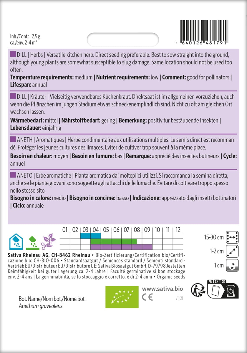 Lækker dild med smuk grøn farve. Alsidig køkkenurt. Direkte såning foretrækkes.