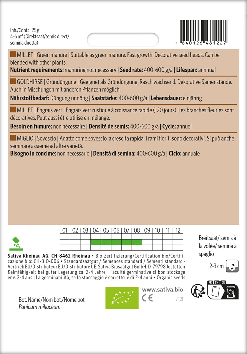 Velegnet som grøngødning. Hurtig vækst. Dekorative frøhoveder. Kan blandes med andre planter. Velegnet til hirsegrød.