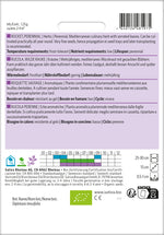 Flerårig, middelhavs urt med taggede blade. Kan dyrkes praktisk talt hele året rundt. Fine frø, derfor bedre formering og udplantning senere.