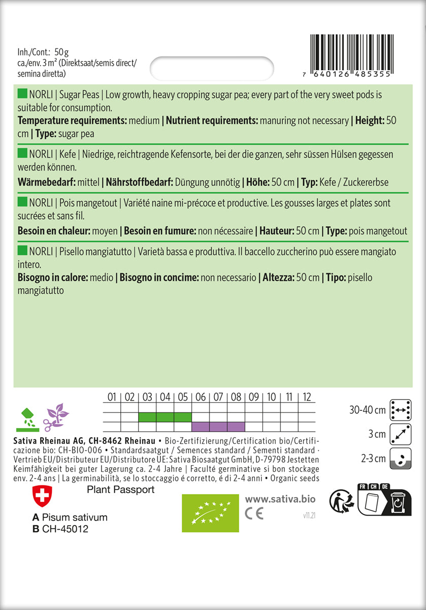 Frilandssåning: Tidligt, så snart jorden er tjenlig. Vand så rillen før såning. Hold såningen fugtig, til frøene er spiret. Læg frøene i blød nogle timer før såningen.