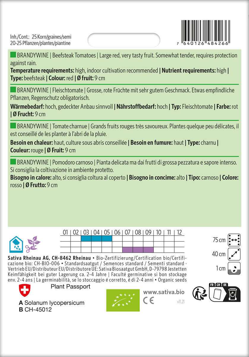 Dette er den absolut bedste originale tomat til dato. Brandywine kan spores over 250 år tilbage. De er faste i kødet, dybrøde og vejer gennemsnitligt ca. 500 gram. De er yderst delikate.