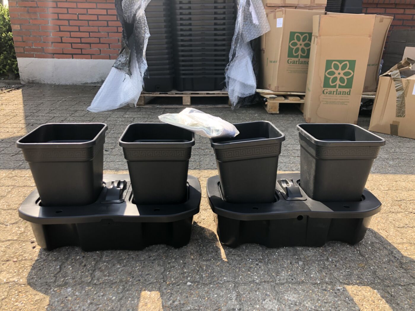 OBS: i bunden af vandtankene sidder der 4 plastic flapper - deres funktion er blot at holde potterne under transport. Vi oplever desværre af og til at de kan knække under transport. DET har ingen praktisk betydning for funktionen af systemet - vi bytter naturligvis hvis du ønsker det - men ellers giver vi UDVIDET garanti der gælder i hele produktets levetid, hvis der senere opstår problemer som følge af skaden.