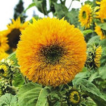 Kæmpesolsikke i en spændende ny variant. Blomsten er "fyldt" og lyser op i enhver have med sine gul-orange kæmpeblomster - planten kan blive over 3 meter høj! ca 30 frø