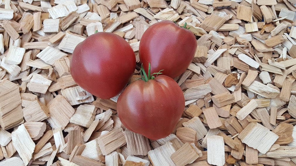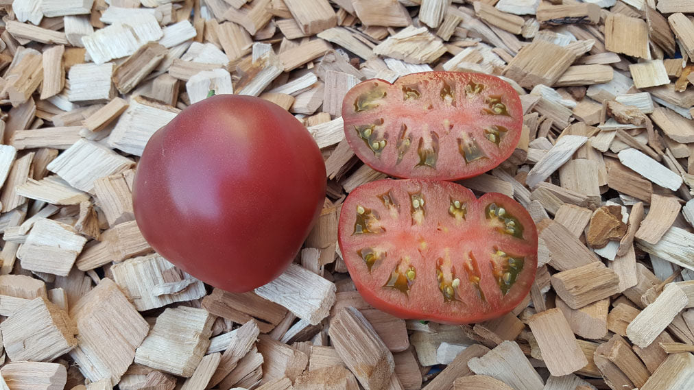 En meget lækker tomat. Producerer mellemstore hjerteformede lilla/sorte frugter. Smagen er let krydret og virkelig lækker. Tomaterne kan veje op til 250 gram.