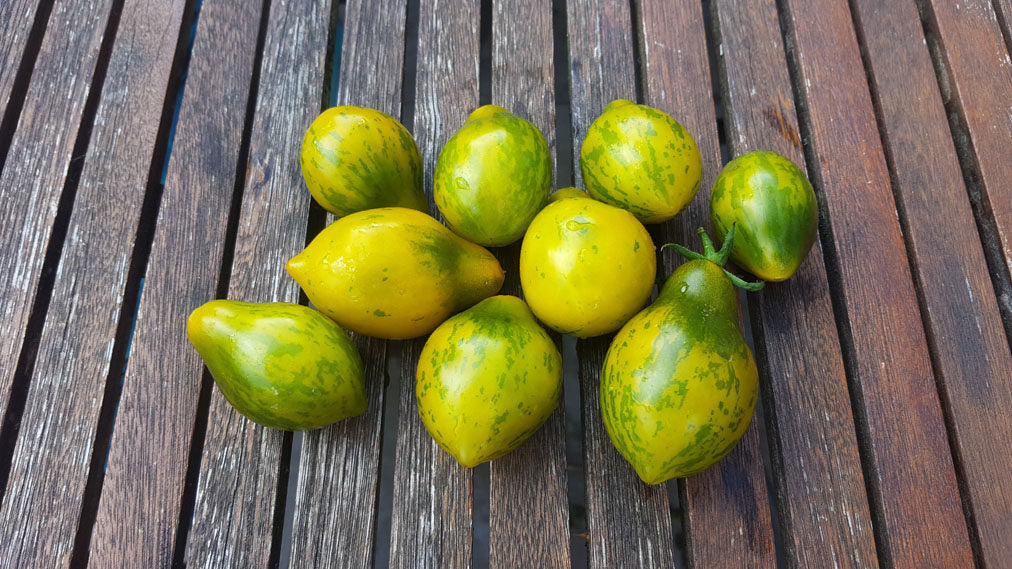 En lækker lille tomat som er opkaldt efter den berømte forfatter og aktivist Michael Pollan, som har bidraget meget til bæredygtighed. Frugterne er små og grønne med flotte gule striber og form som en citron. Smagen er sød, mild og helt fantastisk. Frugterne vejer mellem 50 og 100 gram.