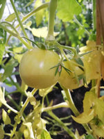 90 dage, ubestemt - 'Honor Bright' har nogle interessante unikke genetiske træk. Dens regelmæssige bladløv har en gullig, næsten fluorescerende grøn nuance, når den vokser. Til at begynde med tænker du måske, at planterne er syge eller mangler noget næringsstof. Dette er ikke tilfældet og kan tilskrives en specifik genetisk egenskab. Et andet usædvanligt træk er, at blomsterne er cremefarvet og ikke gul som typiske tomatsorter.