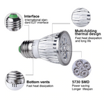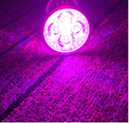 diameter : 5 cm, E27 fatning (alm. stor) - spredning ca 45 grader. Epistar (Kina) dioder - 4 røde og 1 blå. effekt 10/5W