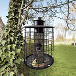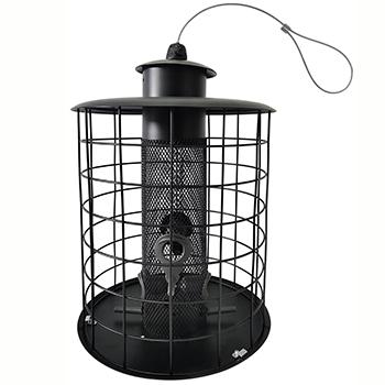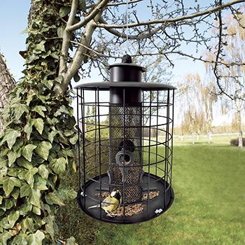 Det yderste gitter sikrer at småfuglene kan spise i fred,