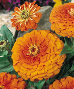 Frøkenhat - zinnia elegans - Orange King. En op til 80 cm. høj sommerblomst, der udvikler store fyldte blomster i august-oktober. Smuk orange variant. (Enkelte fejlfarver kan forekomme) Minimum 100 frø