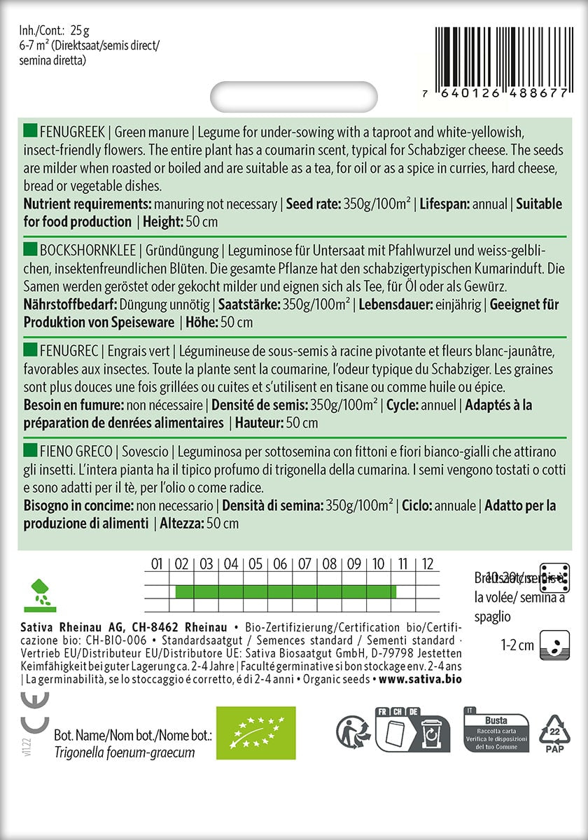 Bukkehorn er en aromatisk urt, som er hjemmehørende i Nordafrika og Middelhavsområdet og har desuden stor udbredelse i Indien. Dens frø anvendes i ayurvedisk og kinesisk traditionel brug. Frøene er mildere ved ristning eller kogning og egner sig som te, til olie eller som krydderi i karryretter, hård ost, brød eller grøntsagsretter.