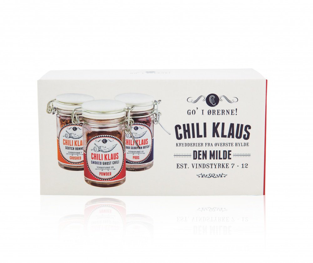 I denne pakke får du tre glas med chili – et med powder, et med crushed og et med hele pods.