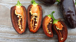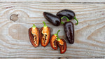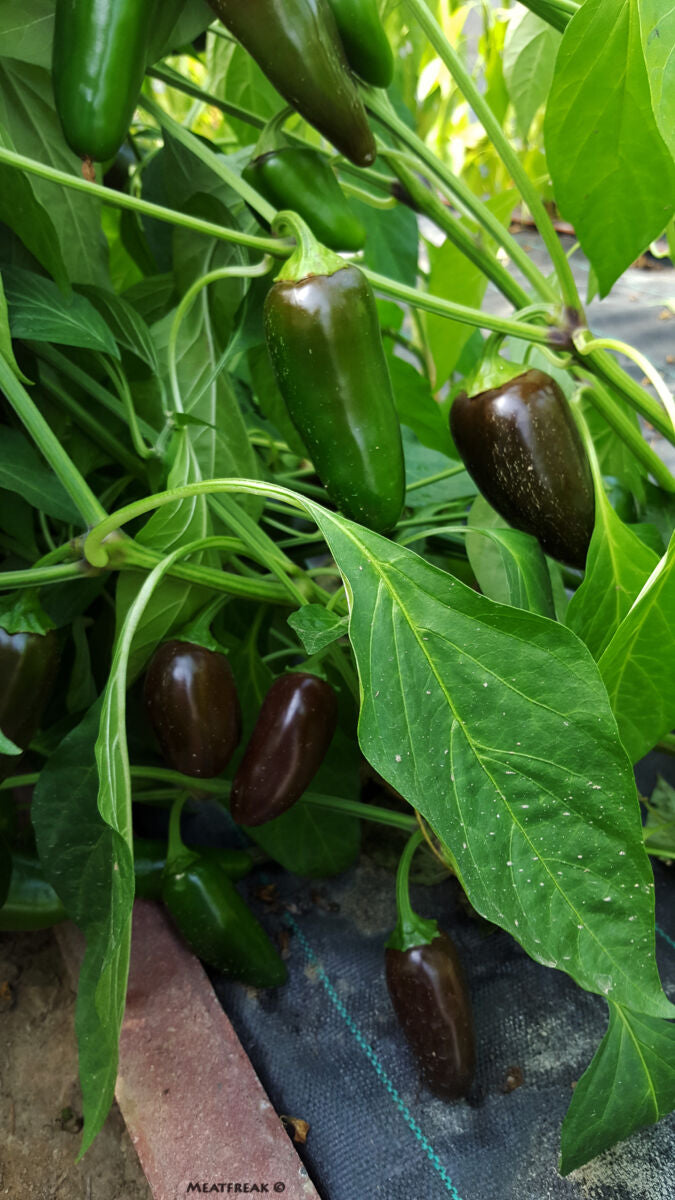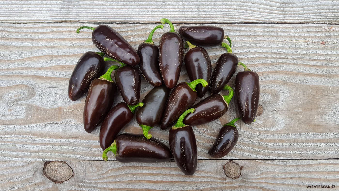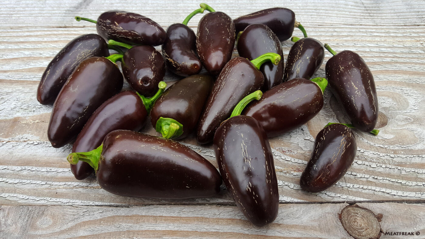 Is a brand new Jalapeño variety developed since 2014. It has an unique dark chocolate color when fully ripe with moderate corking on the pods. Due to the thick flesh of the fruit it takes quite some time for the pods to mature but like any Jalapeño these can also be eaten when still immature. The green pods have the typical spicy Jalapeño aroma with an average size of 8cm. It is rather mild compared to most Jalapeño varieties which makes it very versatile. Very prolific plants that get about 70cm tall.