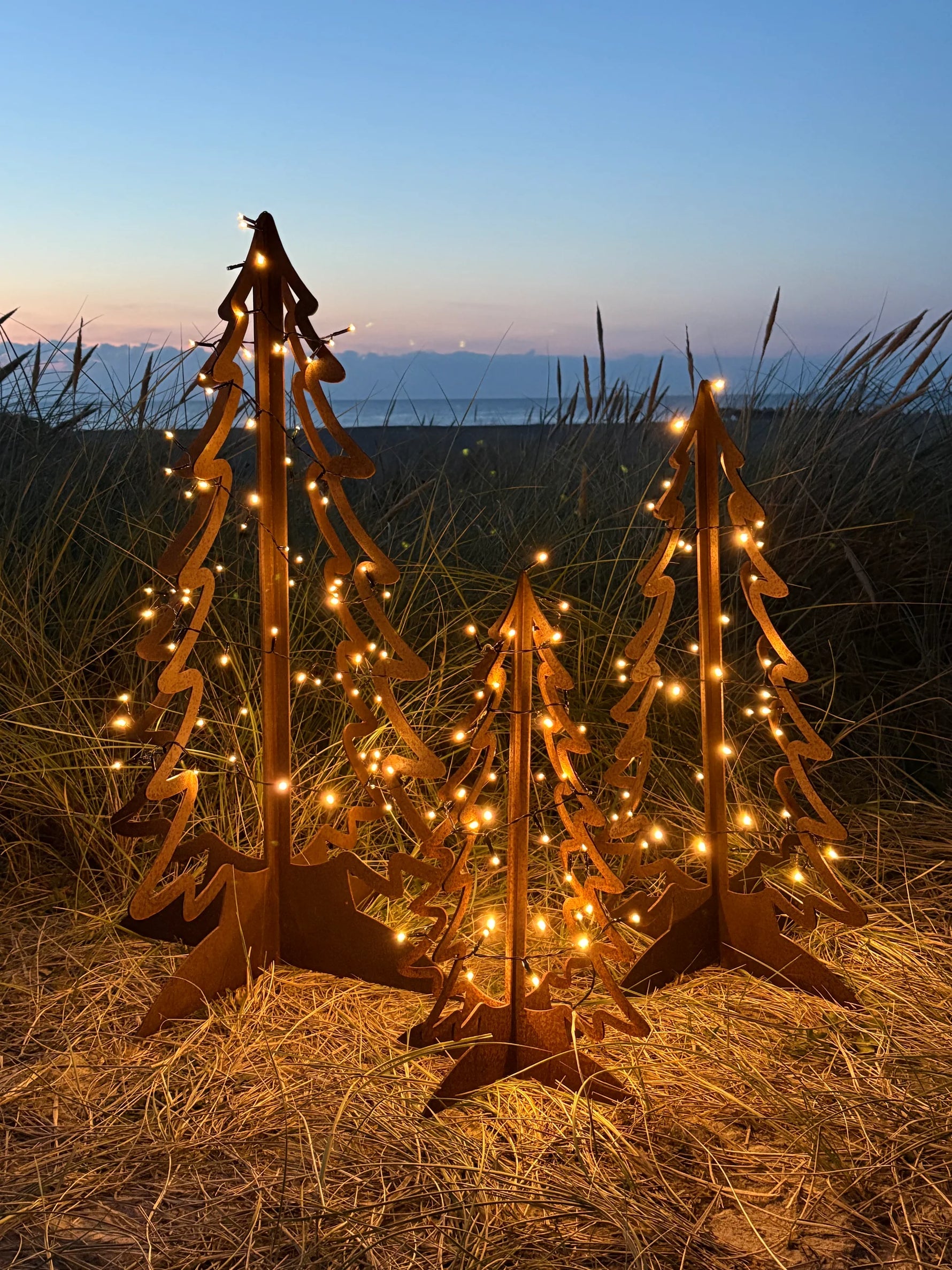 Gør de mørke vinterdage hyggelige med vores dekorative juletræer i 3 mm vejrbestandigt cortenstål.