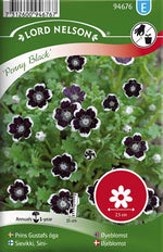 Beskrivelse: Farvestærk sommerblomst som dækker jorden. Sorten har så mørkerøde blomster, at de næsten ser sorte ud. Den mørke farve forstærkes af en sølvhvid kant hele vejen rundt om blomsten. Meget speciel farve og et aktiv ved farvekomposition i samplantninger og krukker. Letdyrket, gammeldags blomst i en usædvanlig farve. Vandes jævnligt.