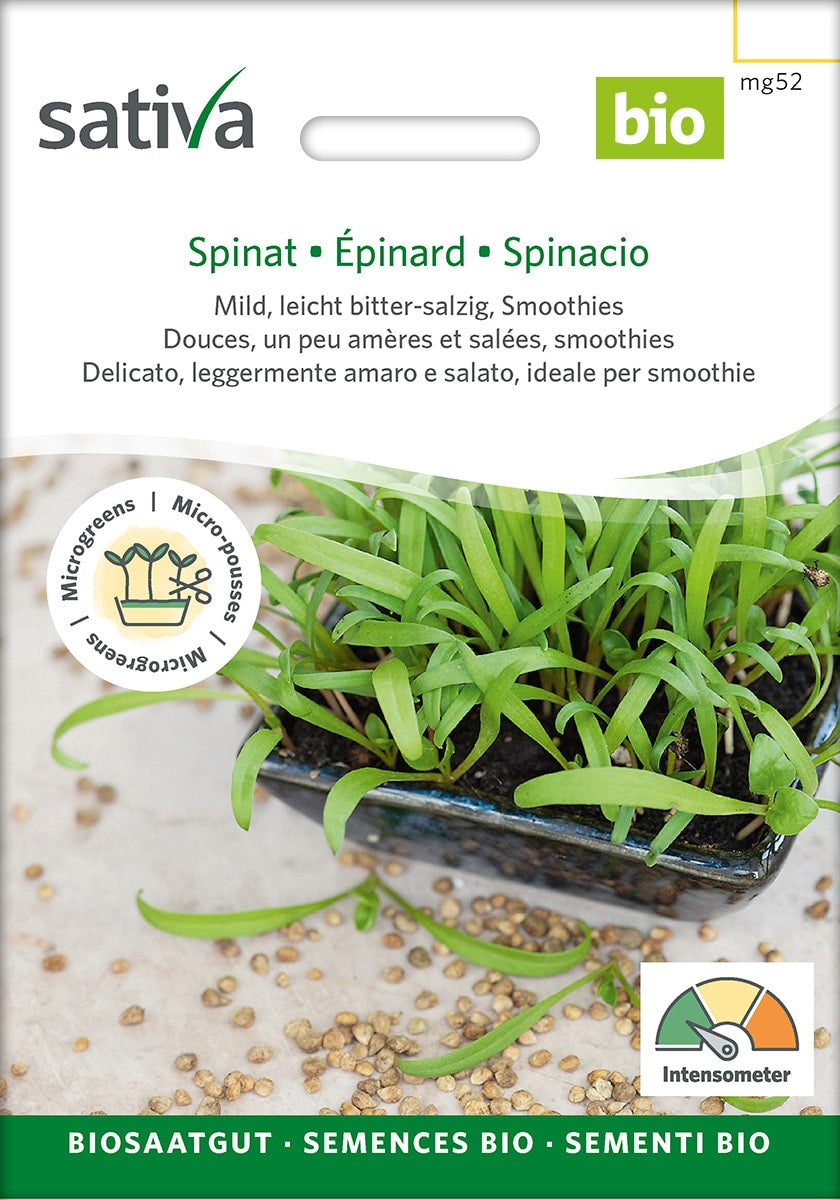 Opdag Sativas spinat spire frø til mikrogrønt - en kilde til friskhed og næring i din egen køkkenhave. Disse små frø spirer hurtigt til saftige skud med en mild spinatsmag og en intens grøn farve. Dyrket med omhu og kvalitetssikret for at opnå den bedste smag og ernæring, er vores spinat spire frø den perfekte måde at tilføje et friskt pust til dine retter.