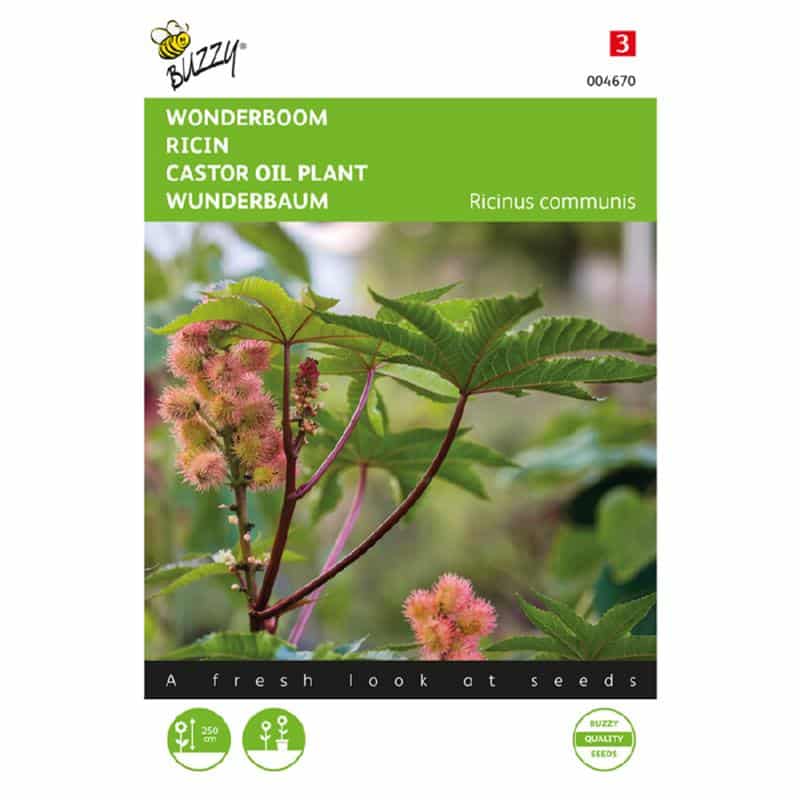 Ricinus betyder en slags tæge eller lus; planten har fået navnet, fordi frøene minder om disse dyr. Olieplanten stammer fra tropisk Afrika, hvor planten er en kraftig busk. Planten bliver op til 250 cm høj. FRØENE ER GIFTIGE