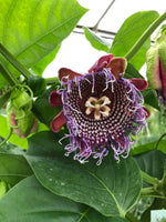 Meget kraftigtvoksende og varmekrævende plante - får kæmpestore rød/lilla blomster.