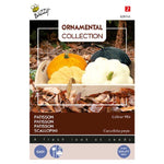 En blanding af gule, orange, grønne og hvide Scaloppini-squash. Kødet ligner en zucchini. Gode ​​fyldvarianter.