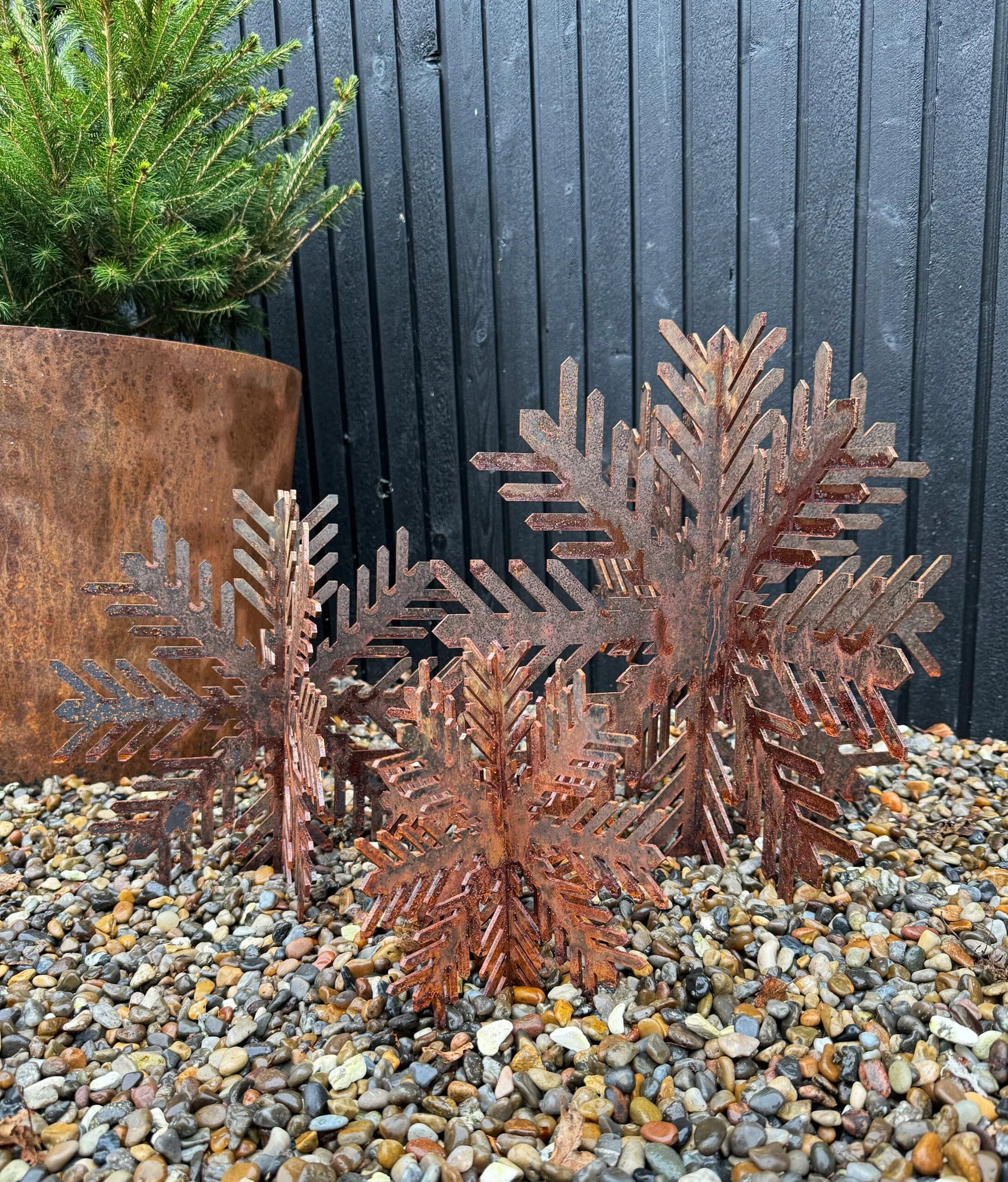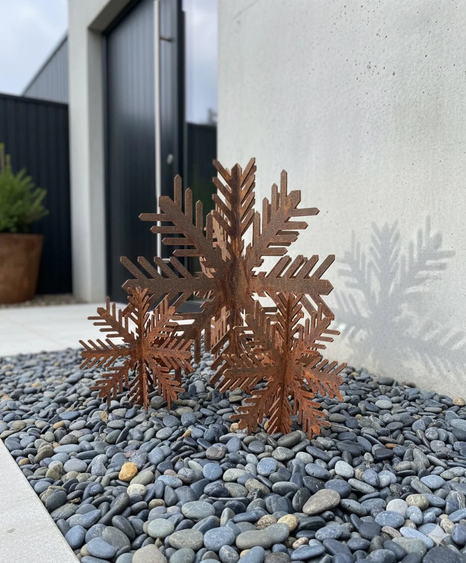 Hvid jul er desværre ikke altid en selvfølge – men med vores dekorative snefnug i vejrbestandigt corten stål kan du nyde vinterens magi, uanset vejret.